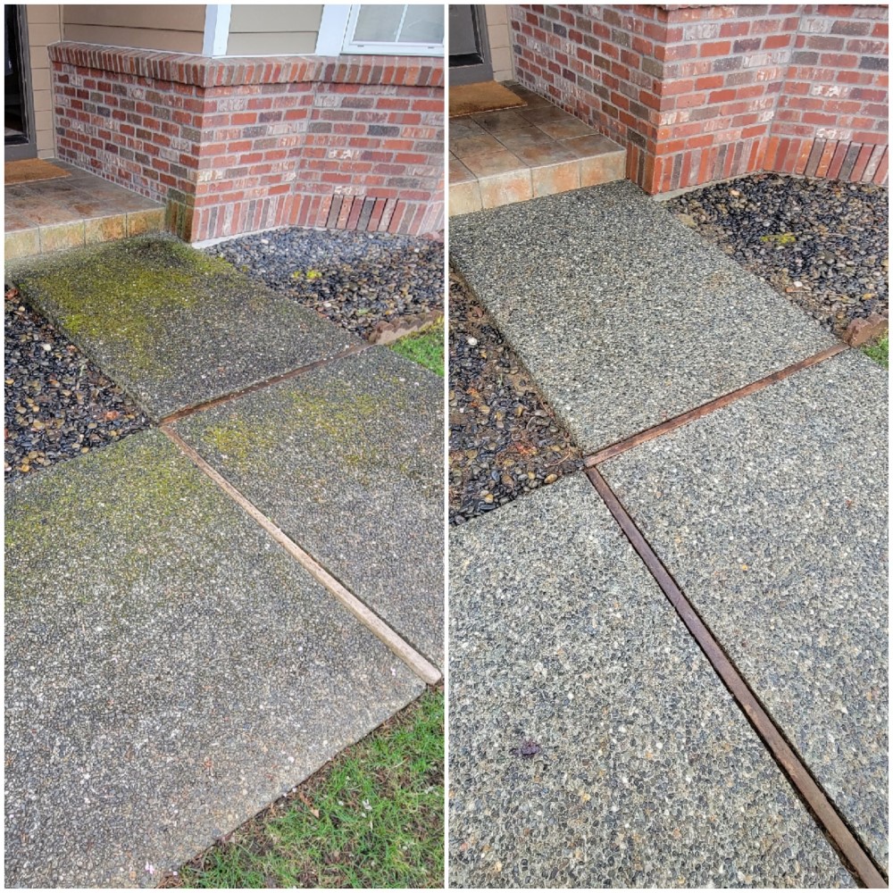 This home had a significant amount of moss built up on the front driveway and walkway. We were called to come remove it with a pressure washer and help to reduce how fast it will come back. Check out the amazing transformation.