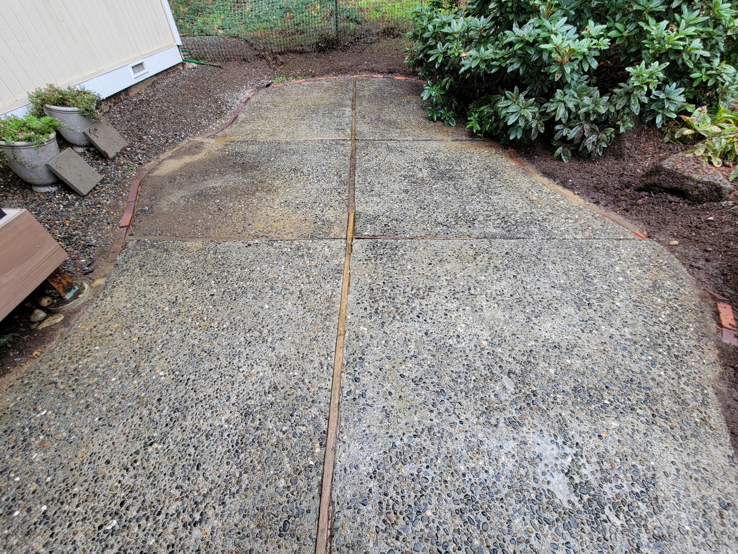 Back patios can be the perfect spot to relax after a long day of work in the summer but can quickly accumulate moss and other debris because they're often covered from the sun. We had the chance to help return this patio to its former glory recently. Our pressure washing services include a post treatment application against future growth slowing its return.
